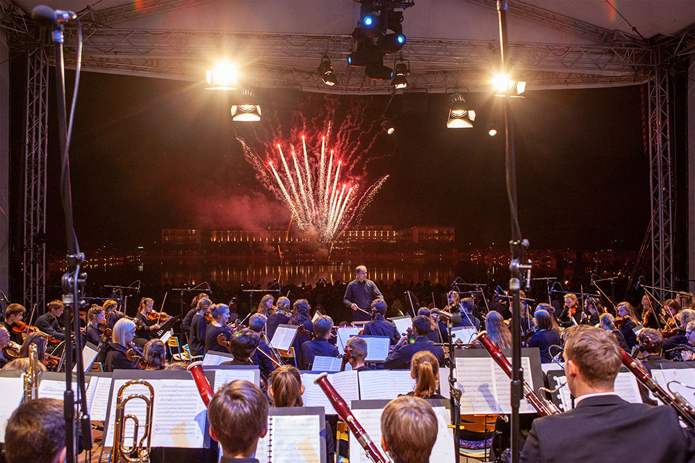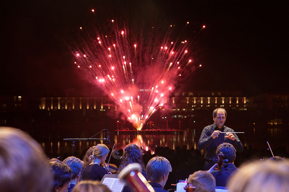 Stimmungsvoll und gewaltig eröffnete das Jugendsinfonieorchester Bremen-Mitte unter der Leitung von Martin Lentz auch in diesem Jahr mit der Einleitung aus „Also sprach Zarathustra" von Richard Strauss den Abend. Im weiteren Verlauf hörten mehr als 17.000 Zuschauer eine Mischung aus bekannten, aber auch selten zu hörenden Orchesterwerken bis hin zu Filmmusik. Unterstützt wurde das Konzert durch den Chor „Northern Spirit" unter der Leitung von Jaret Choolon.